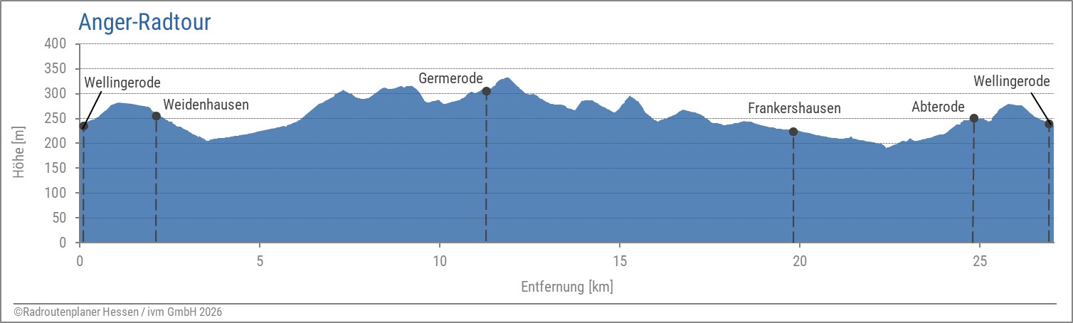 Die Anger-Radtour verbindet diese Plätze aller zur Gemeinde Meißner gehörenden Ortsteile wie auch den in Frankershausen, dem Sitz der Gemeinde Berkatal. Höhepunkte der Tour sind der auch als Todstein bekannte Abteröder Bär an der verwunschen wirkenden Kirchruine Abterode, die Märchenbrunnen in Vockerode, die Klosterfreiheit in Germerode wie natürlich die beschaulichen Fachwerkdörfer mit ihren Angern im hügeligen Meißner-Vorland.