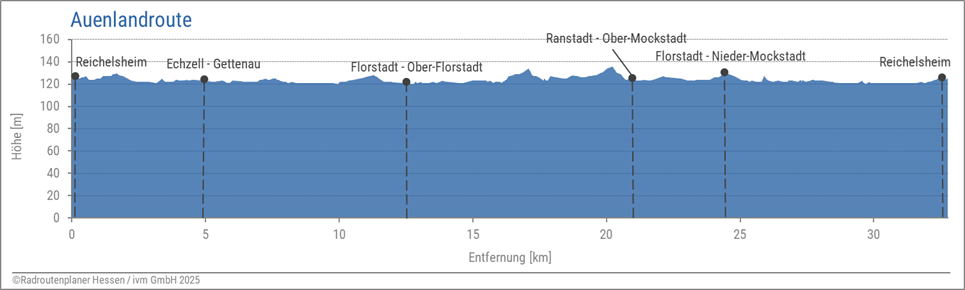 Die Auenlandroute verbindet auf einer Länge von etwa 33 km die drei wichtigen Naturschutzgebiete im Wetteraukreis: "Nachtweid von Dauernheim", "Mähried bei Staden" und "Bingenheimer Ried".